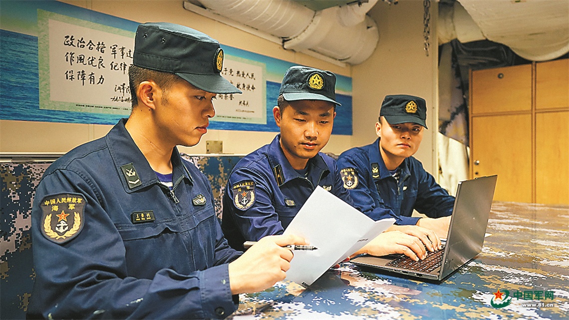 官兵们航行一路,总结一路。航海长杨毅带领专业骨干进行数据采集,进一步细化不同海域的水文气象特征;电工技师李志军针对装备故障问题,深入剖析案例,完善维护保养规范;通信技师汪少雄优化通联流程,明确不同信号放入通信要点……