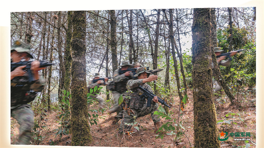 官兵在丛林中进行连贯作业考核。滕召森摄